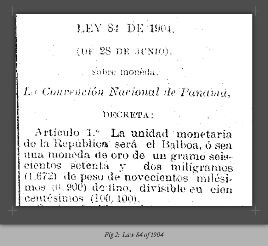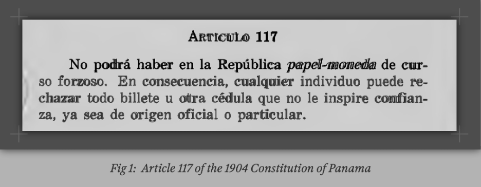 Si Panamá quisiera emitir una moneda de papel propia, tendría que ser plenamente convertible en plata u oro. No podría estar respaldada únicamente por la buena fe del gobierno. A principios del siglo XX, la mayoría de las monedas de papel que gozaban de confianza pública tenían respaldo en oro —incluyendo el dólar estadounidense—. Esas monedas no se consideraban «papel moneda de curso forzoso», porque eran plenamente convertibles. En contraste, un claro ejemplo de moneda no convertible fueron los pesos de papel colombianos emitidos durante la administración de Núñez, que provocaron la fuerte inflación en la Guerra de los Mil Días, tal como vimos anteriormente.