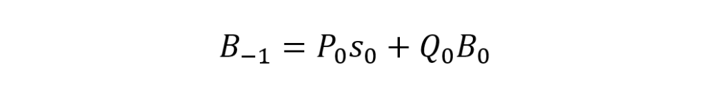 Como ya hemos explicado, el Estado puede absorber la moneda fiat con la que ha financiado su moneda bien con sus activos tributarios o con una emisión de deuda pública. Fijémonos que la Teoría fiscal del nivel de precios no hace referencia, por el momento, a activos no estatales que forman parte del balance de los bancos centrales y que pueden ser utilizados para generar un reflujo de moneda fiat que contraiga la oferta monetaria. Simplificaciones a un lado, en el período t=-1, estos son los dos métodos que emplea el Estado para realizar esta operación, donde la nueva variable Qº denomina el valor nominal de los bonos en t=0:
